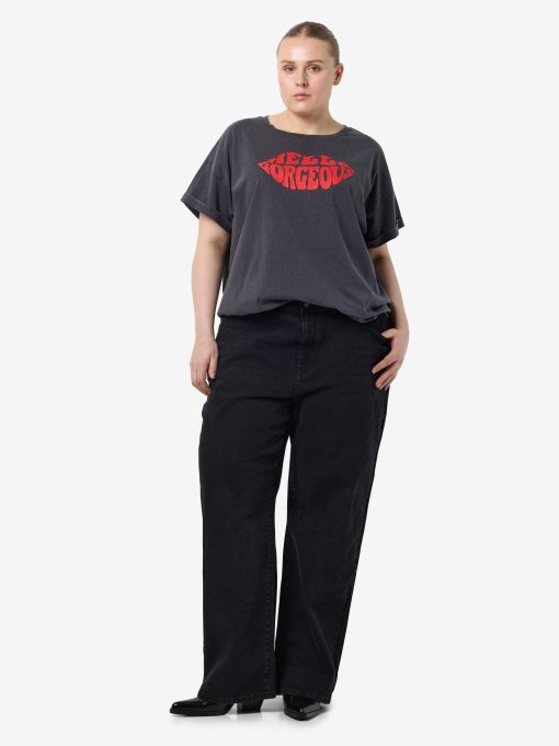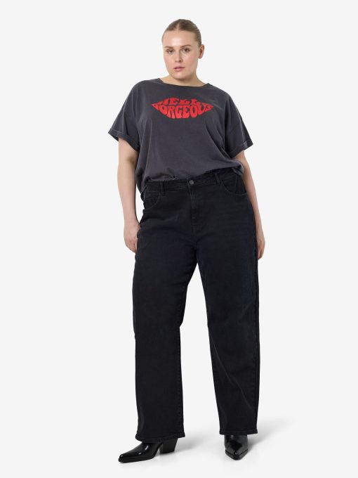 Noisy May Women’s Clothes Curve Nmyolanda Straight Fit Jeans | Black Denim