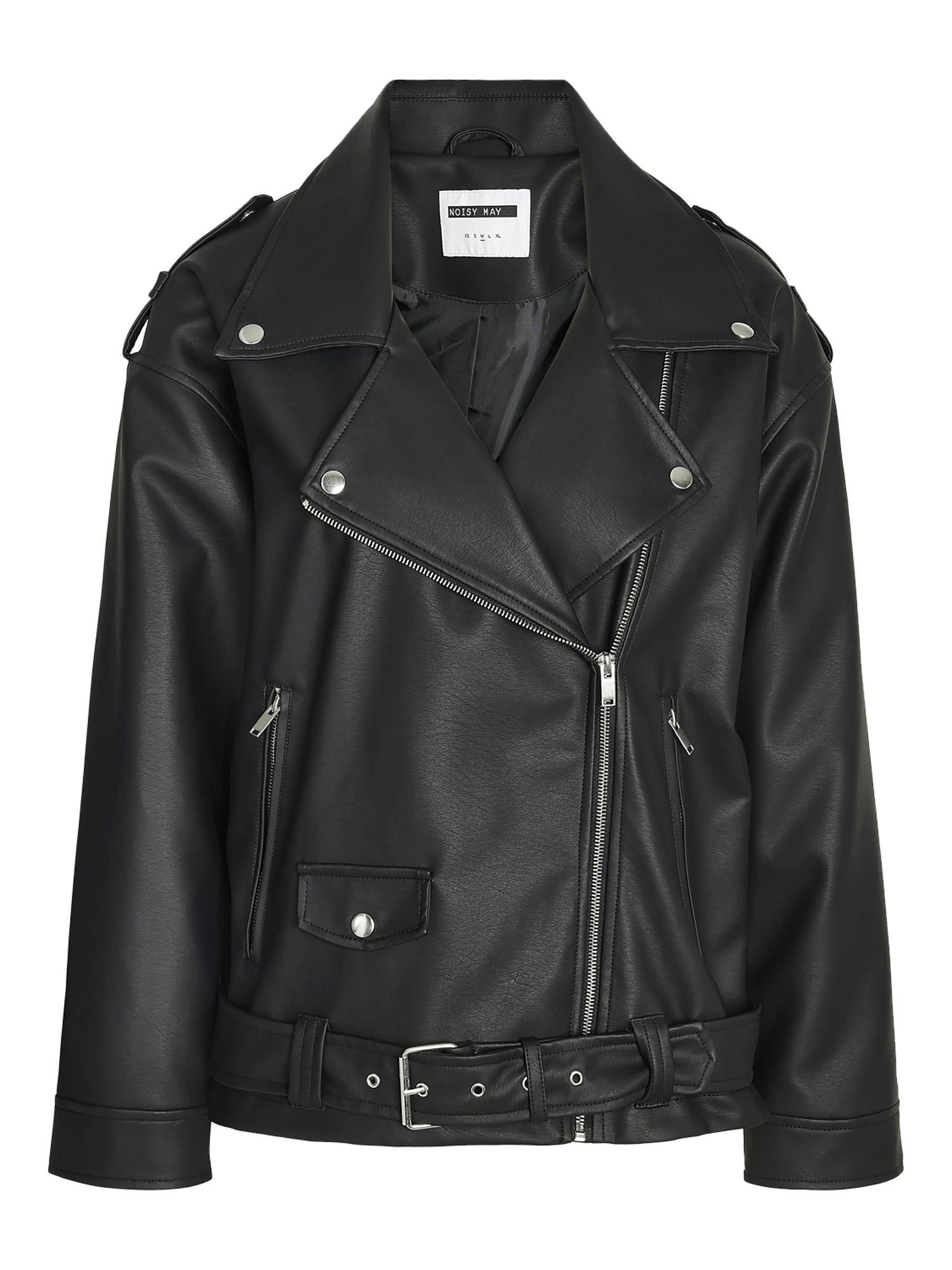 – Curve Collection: PU biker jacket- Spread collar- Epaulettes- Dropped shoulders- Long sleeves- Studded detail- Off-centre zip-up front- Side zip pockets- Small coin pocket with press stud fastening- Square-buckled belt- Regular fit