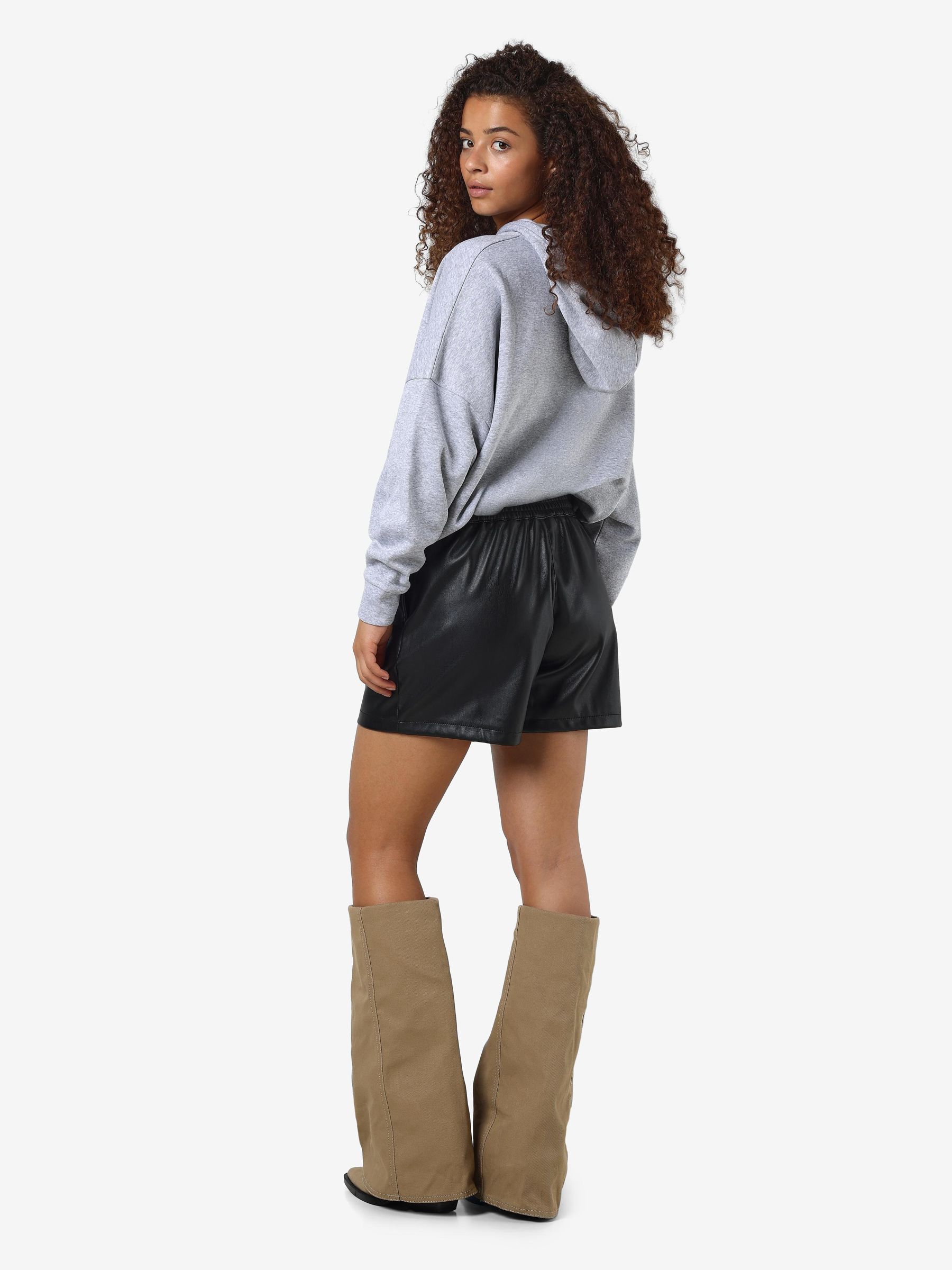 – Faux leather shorts – High waisted – Slit pockets – Elasticated waist – Relaxed fit- Selma is 174 cm tall and wears a size S