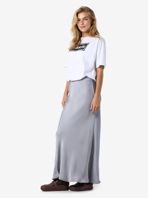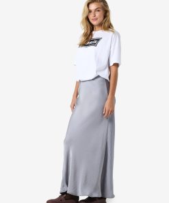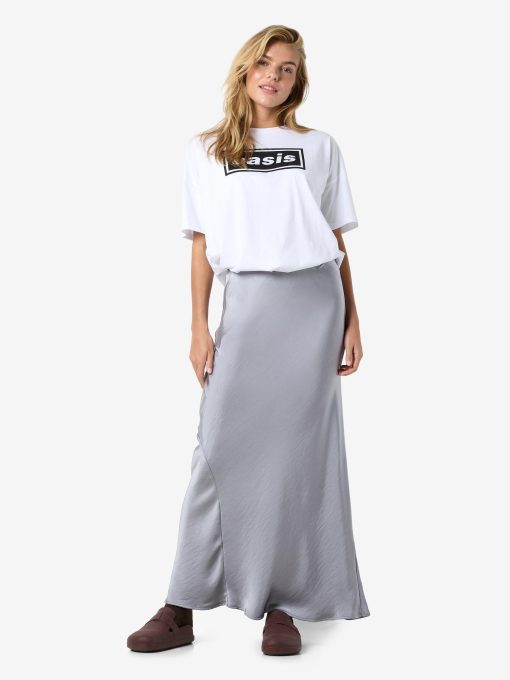 – Maxi skirt with metallic sheen- Normal waist- Mermaid hem with flared pleat detail- Regular fit- Model is wearing size M