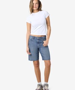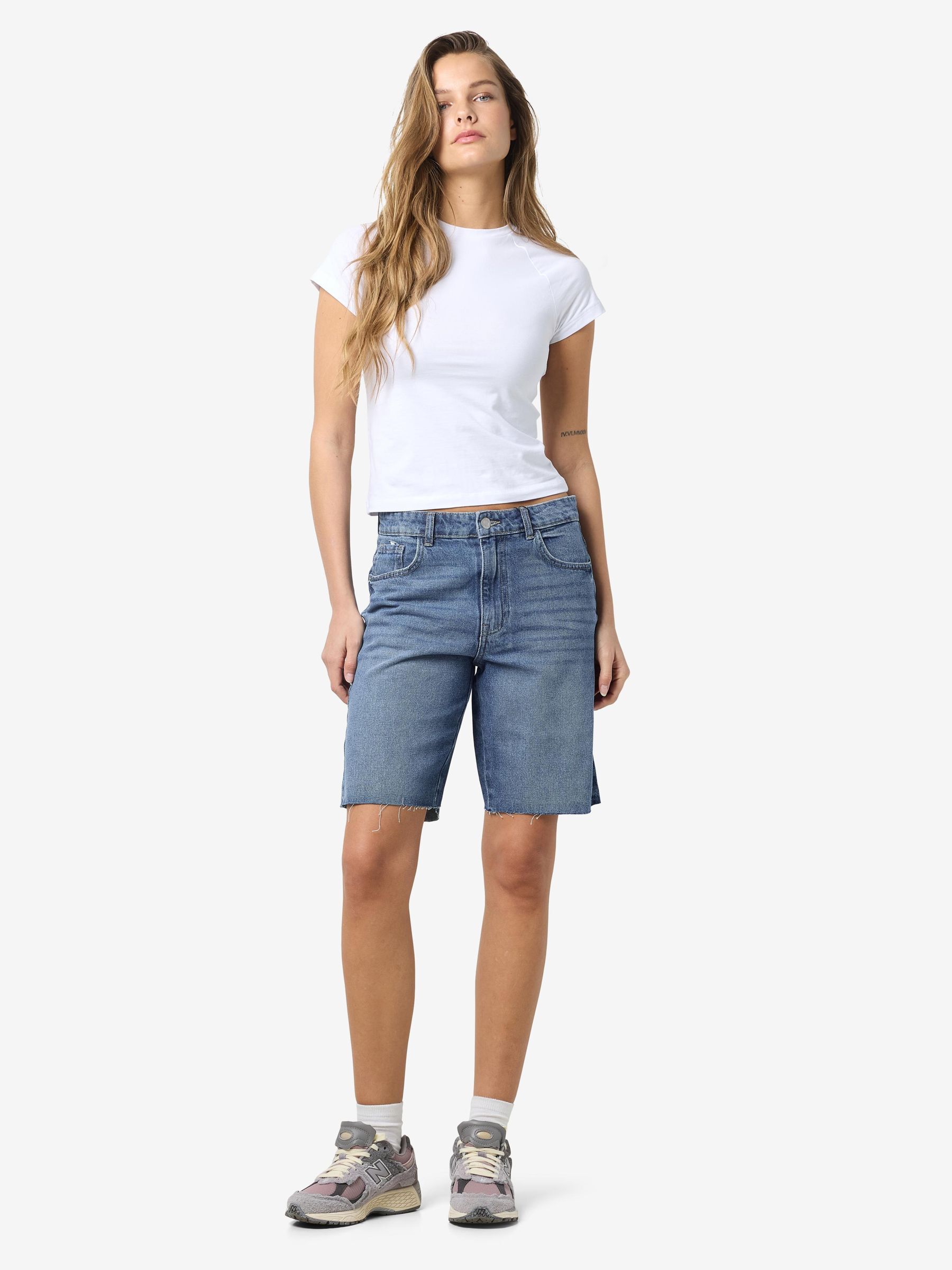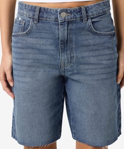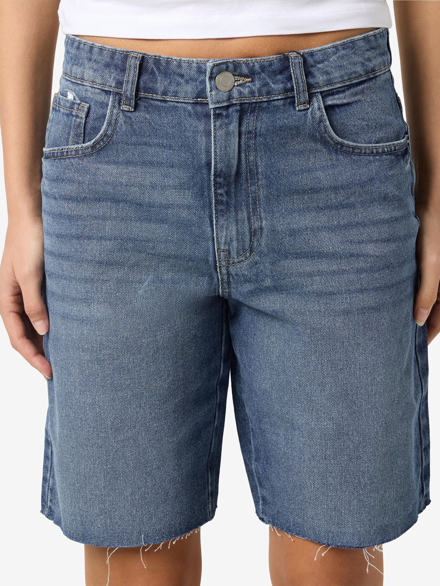 – Normal waisted denim shorts- Belt loops- 5-pocket design- Jacron patch- Zip fly with rivet button fastening- Raw hems- Loose fit- Model is wearing size M