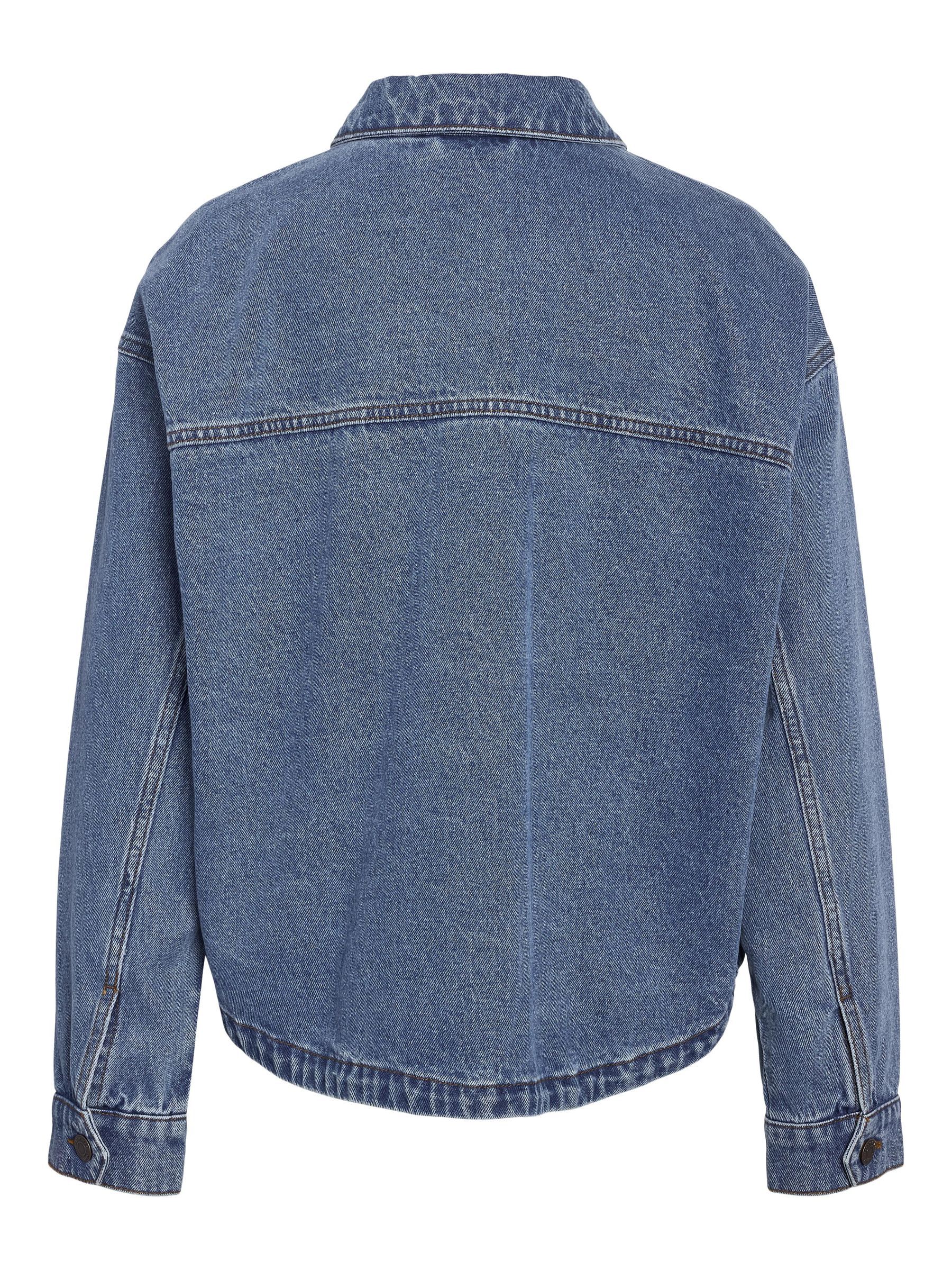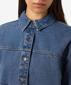 – Medium blue wash denim jacket- Part of a matching set- Spread collar- Dropped shoulders- Long sleeves with buttoned cuffs- Front patch pockets- Button-up front- Regular fit- Model is wearing size M