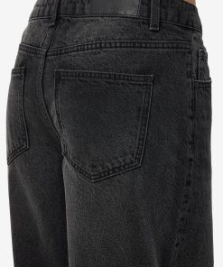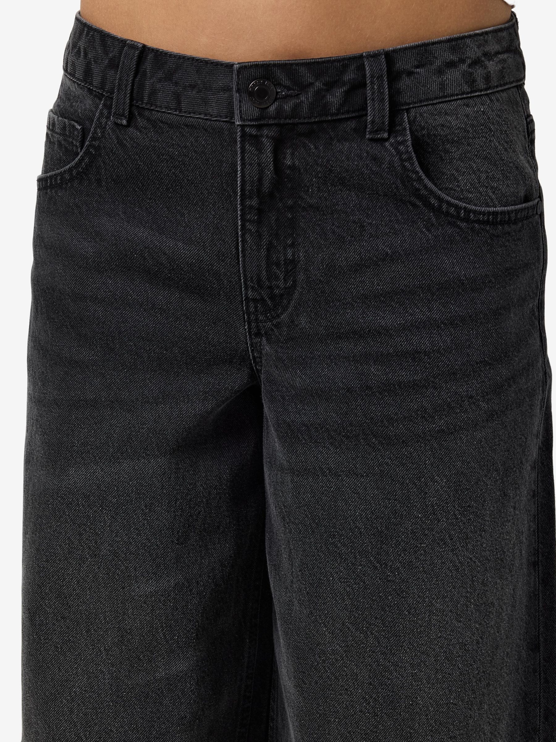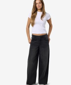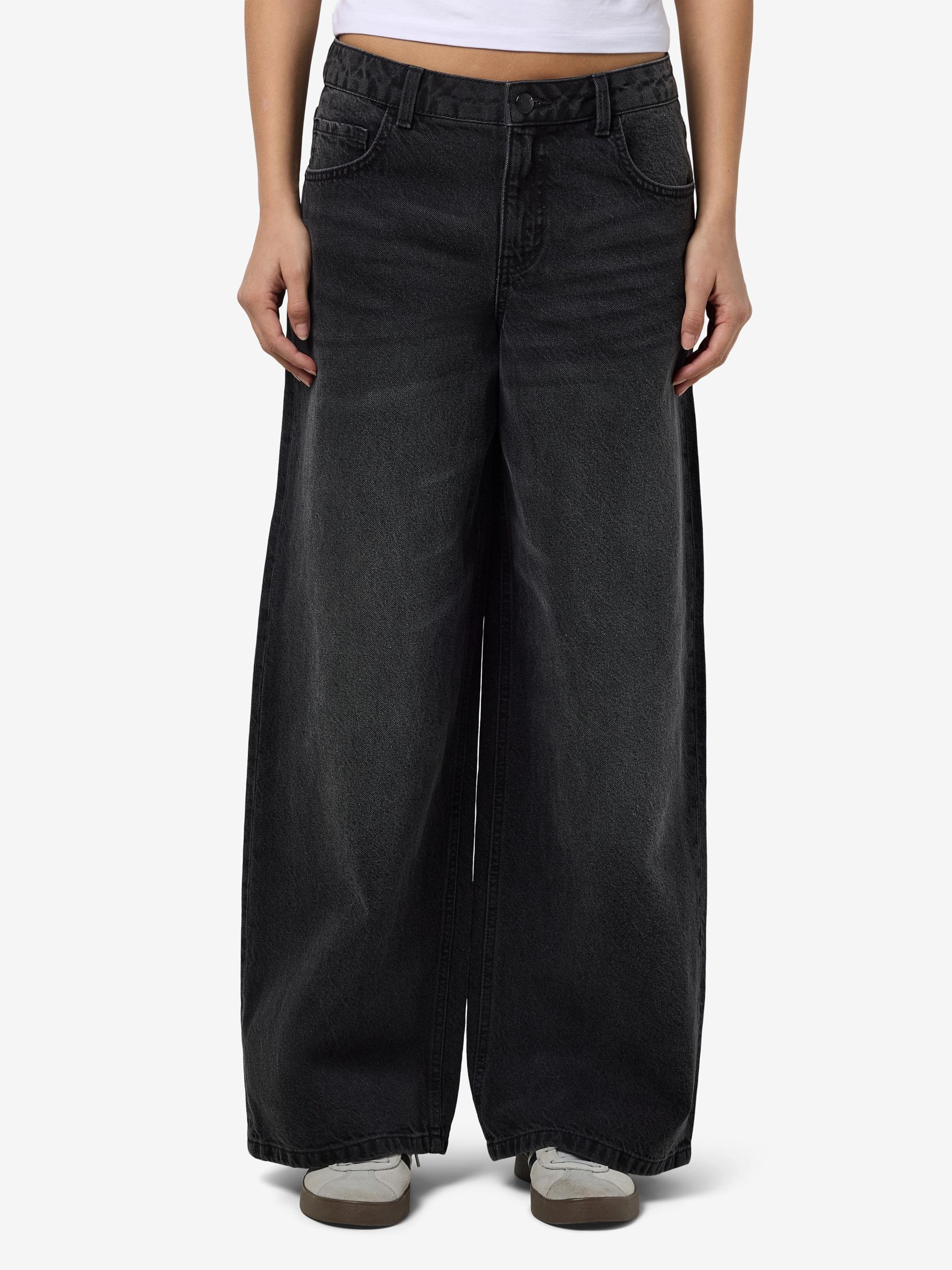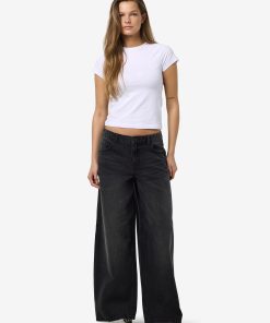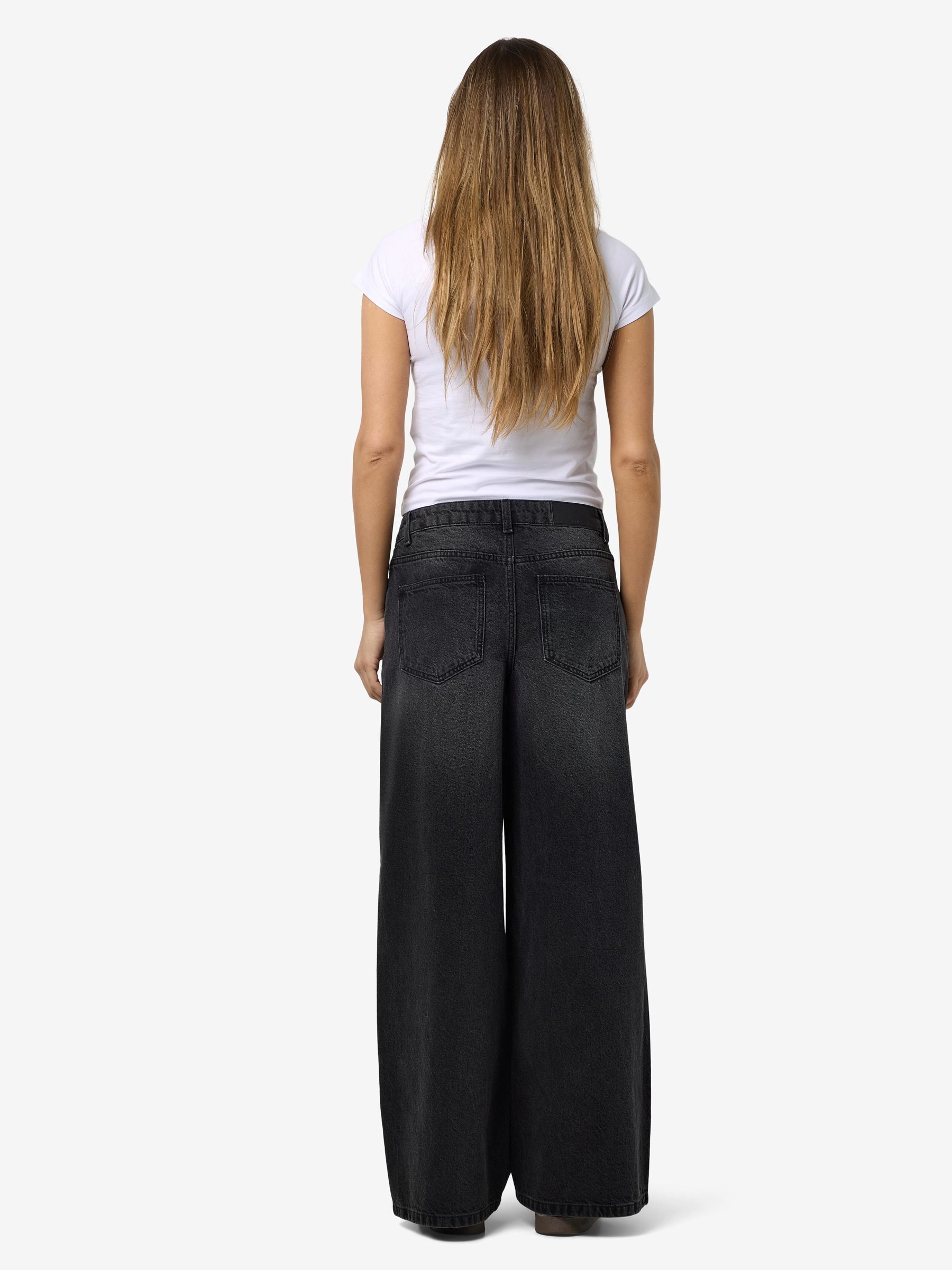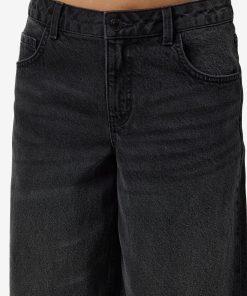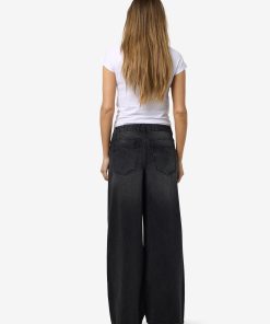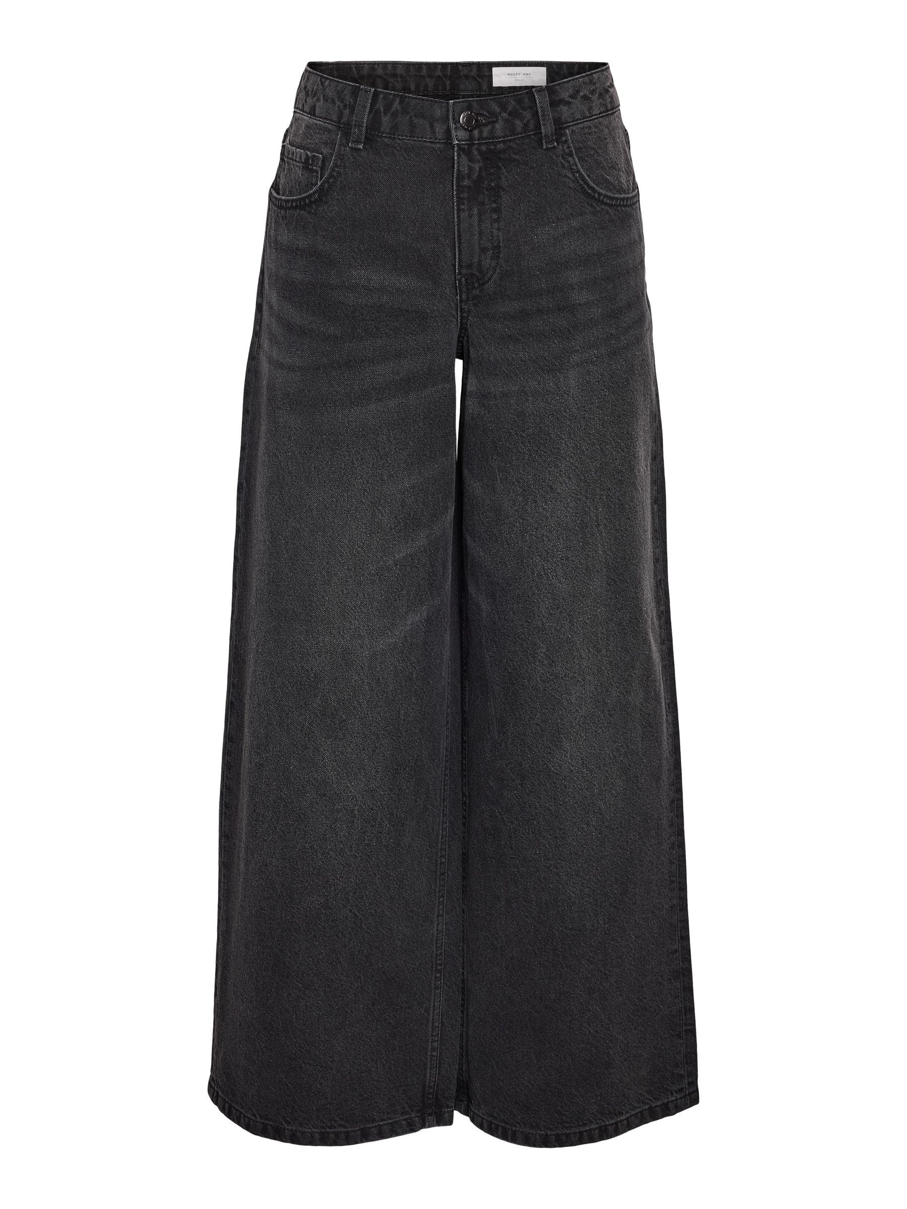 – Mid waist wide leg jeans- Belt loops- Jacron patch- 5-pocket design- Zip fly with rivet button fastening- Faded detail- Extra long stacked length- Wide fit