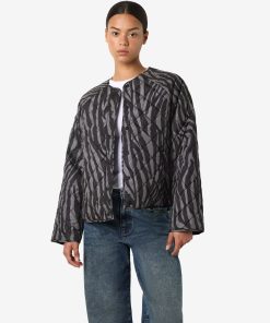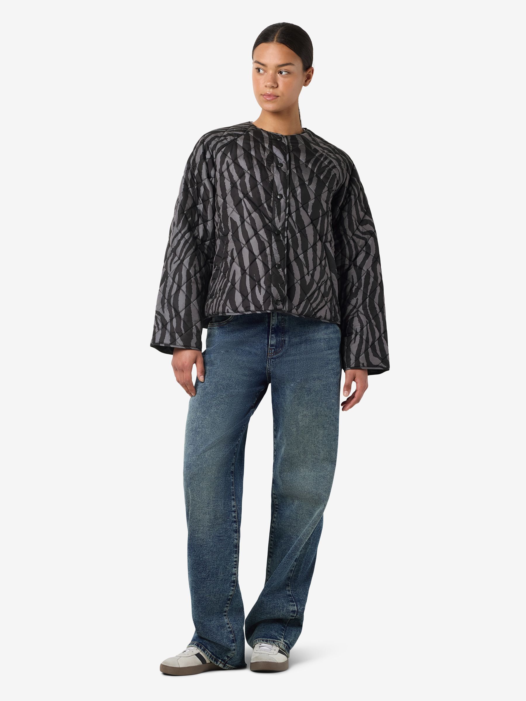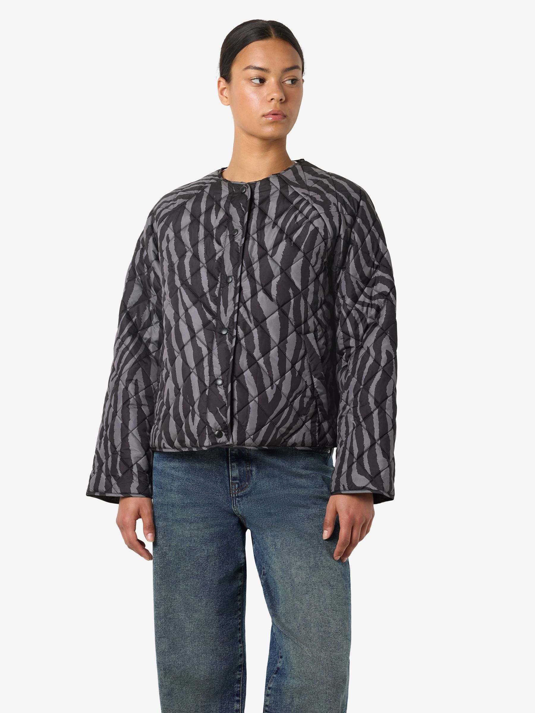 – Quilted jacket- Round neck- Long sleeves- Press stud fastening- Side welt pockets- Regular fit- Model is wearing size M