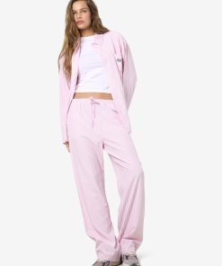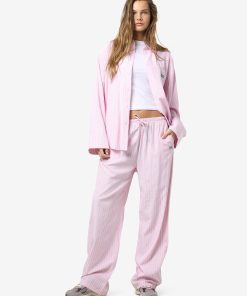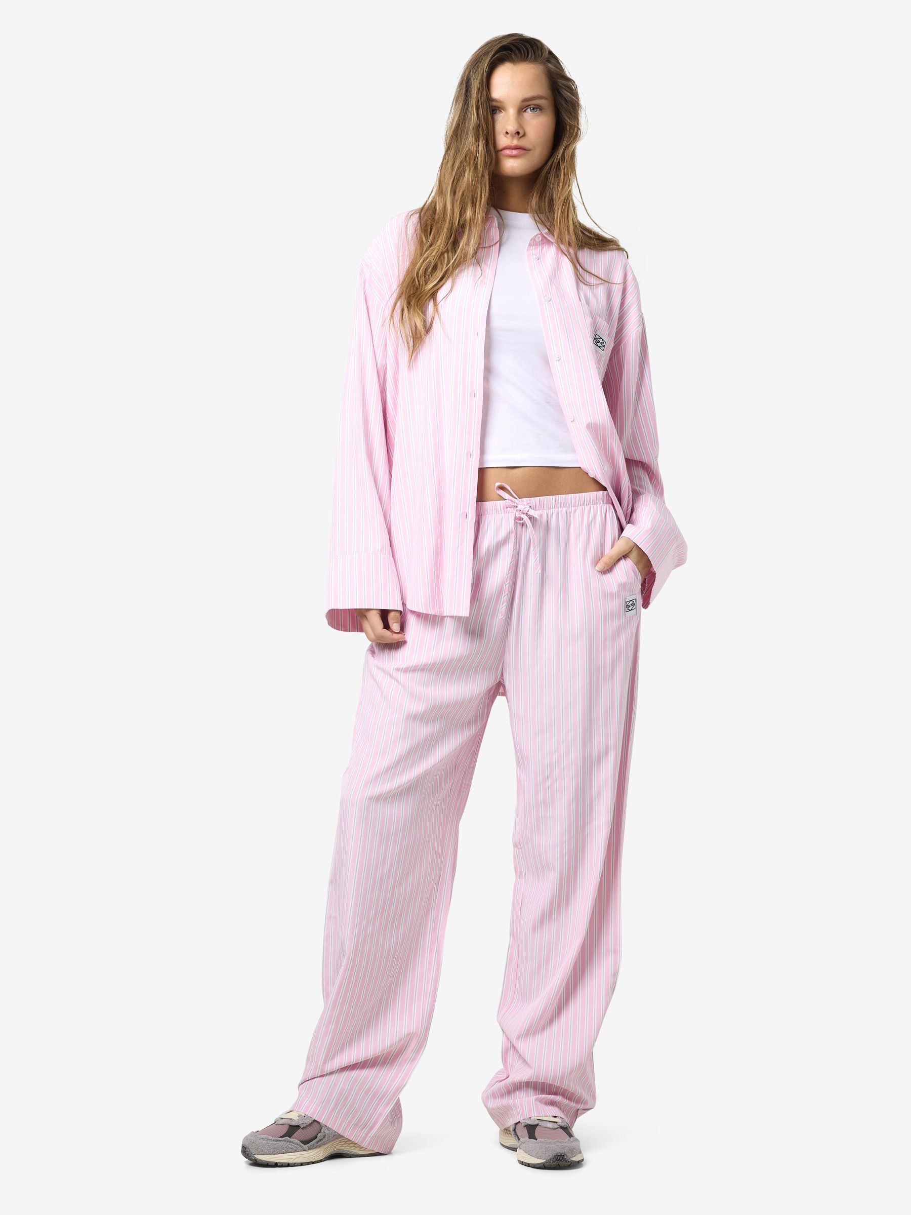 – Striped straight leg trousers- Drawstring waist- Side pockets- Logo embroidery detail- Part of a matching set- Relaxed fit- Model is wearing size M